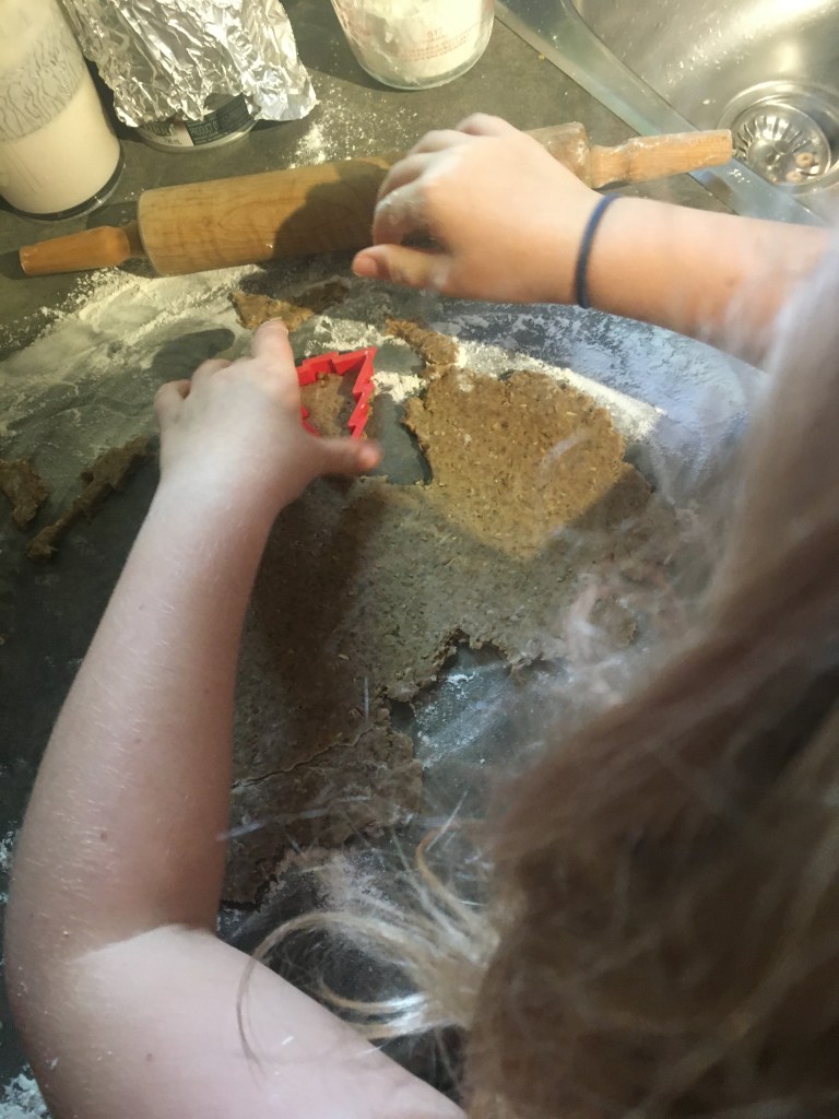 We use a simple recipe that we found on the internet. We sometimes have to change the amounts to make the cookies easier to roll.